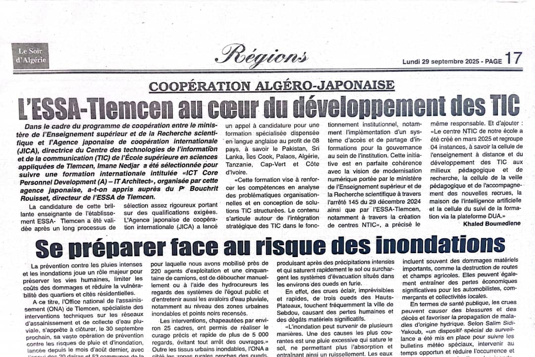 تنفيذا لمخطط التكوين لقطاع التعليم العالي و البحث العلمي لسنة 2025، و الموجه لموظفي القطاع في مجالات ذات أولوية و بالغة الأهمية من أجل ضمان السير الحسن لمرافق القطاع. تم إفتتاح دورة تكوينية،على مستوى المدرسة العليا في العلوم و التقنيات بتلمسان يوم 09نوفمبر2025 في المجالات التالية. _الأمن السيبراني. _المحاسبة العمومية،التحليليةو محاسبة المواد. _الوقاية و الأمن…